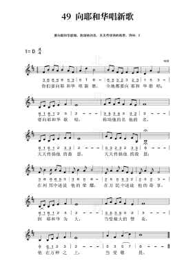 唱诗:第313首(新49)《向耶和华唱新歌》